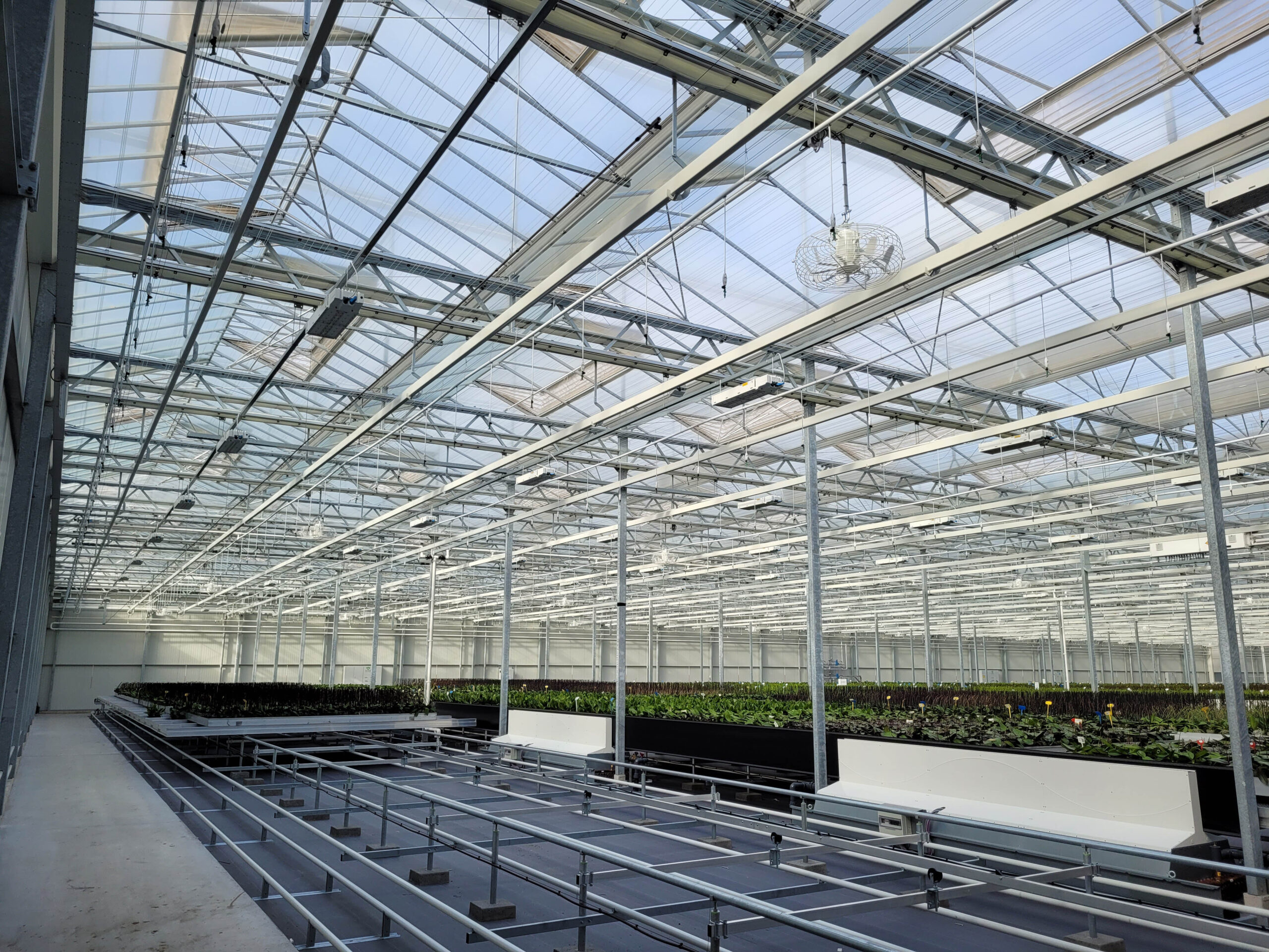 Opti-flor reaches full production capacity Share this post facebook twitter whatsapp linkedin From propagation to harvest in full production At Opti-flor, the new cultivation facility is now running at full capacity. The propagation area is in production with new cutting material, and both the cooling and flowering departments are operational, equipped with tables from the former location. This means the entire cultivation cycle is now fully up and running. Meanwhile, the site itself has also been completed: the front area along Boomaweg has been paved, the deck washer is operational, and the lift hatches and doors integrate seamlessly with the automation system. Even the staircase to the service vehicle on the roof has been installed — the final step in ensuring full accessibility of the system. With these milestones, Opti-flor moves one step closer to a fully optimized, future-proof production environment where every detail contributes to maximum efficiency and crop quality. Want to know about our projects?
